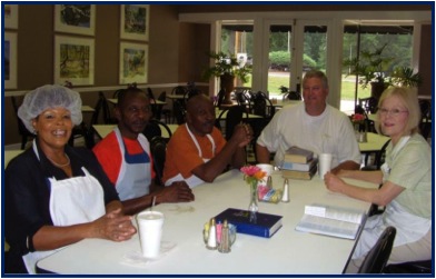 Jim Pendergraph with Troup Transformation Leadership Team started morning prayer in various businesses. Above are pictures of those who participated in morning prayer. Top left: Katie's Restaurant; Top Right: Parmer Brothers Grocery; Bottom left: Loy's Office Supply; Bottom right: Corley Drugs.