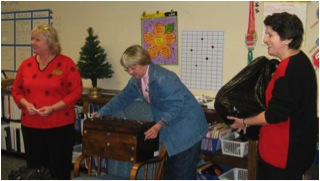 All school in the Troup County School System have been adopted by at least one church. The Principal and the Pastor of the adopting church decide how the church can serve the school. Top left: The First Baptist Church on the Square gave the children at Cannon Street School a school sweat shirt, hat, and gloves. Top right: The First Baptist Church on the Square brought treats for the teacher's treasure chest. Bottom left: New Community Church helps host Teacher Appreciation Day. Bottom Right: Baptist Tabernacle helped Whitesville Road Elementary School provide a meal for veterans.